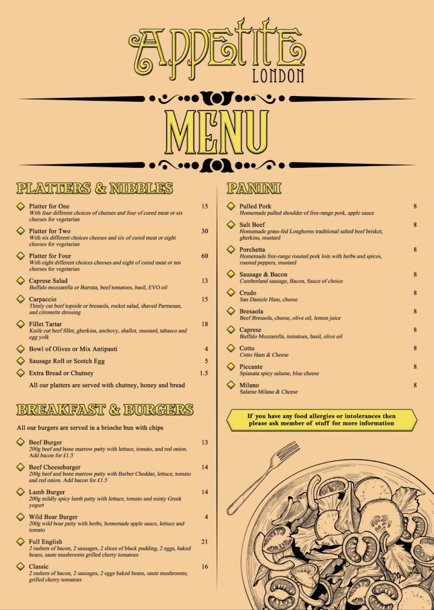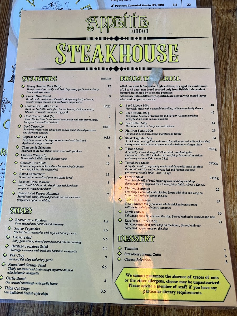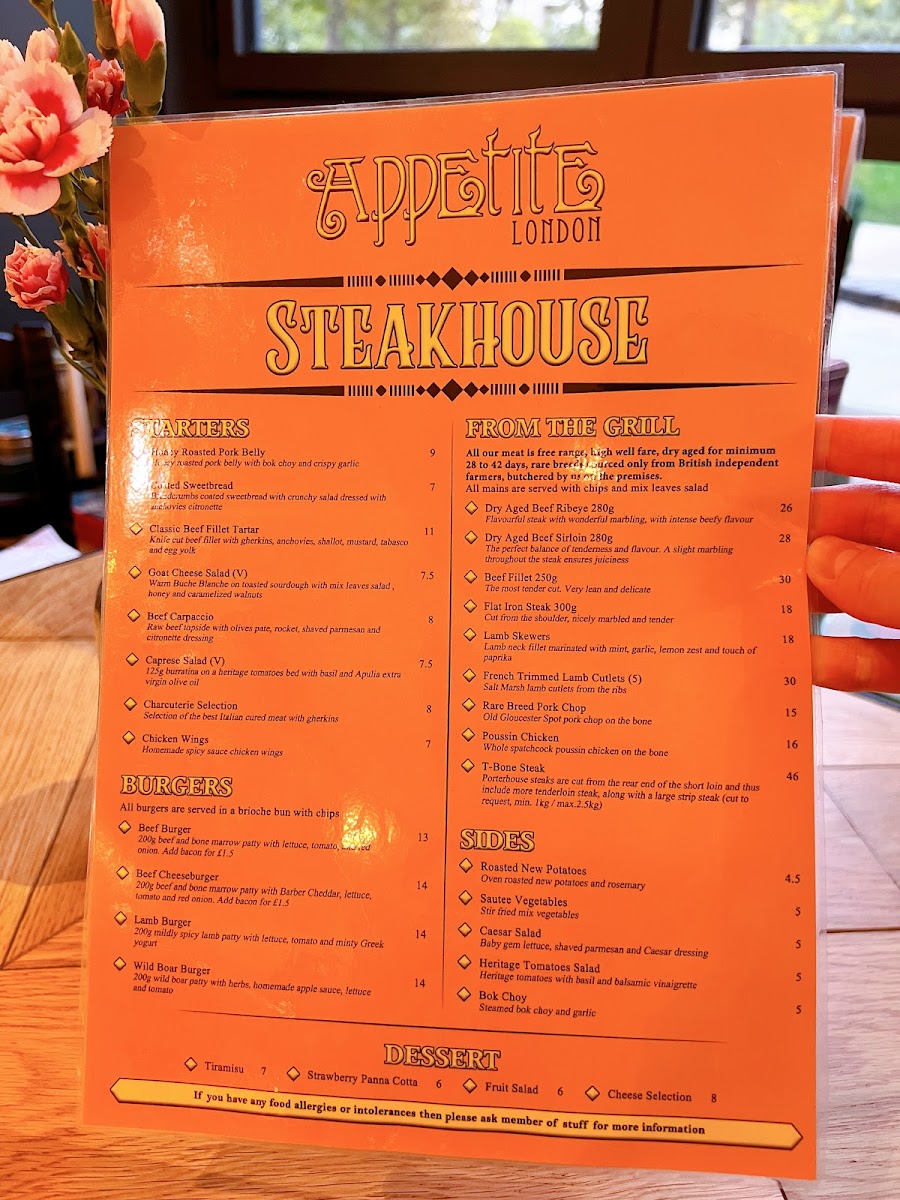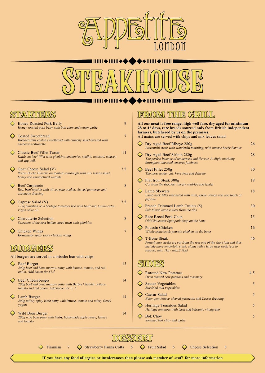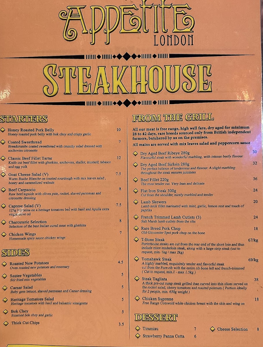 Appetite London Master Butcher & Steakhouse Menu